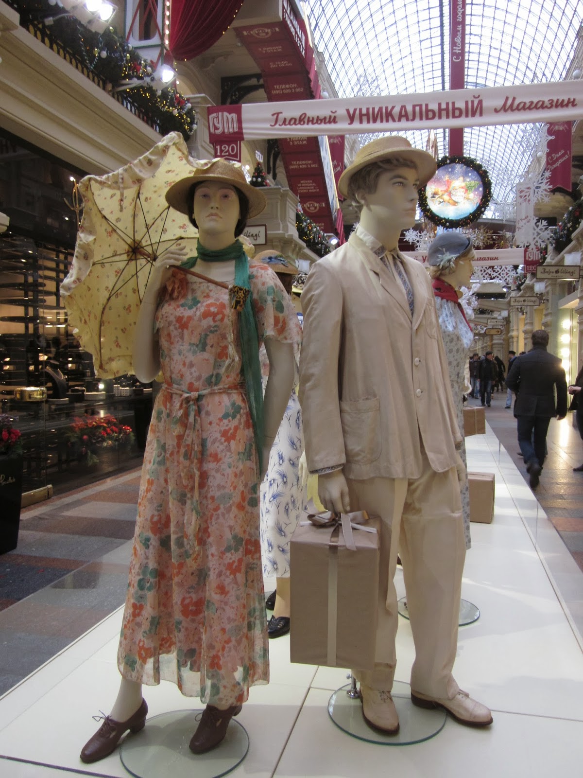 These manikins, dressed in period clothing, were standing down the entire center of one of the aisles of the mall. As we walked along you could identify most of the decades the clothes represented.