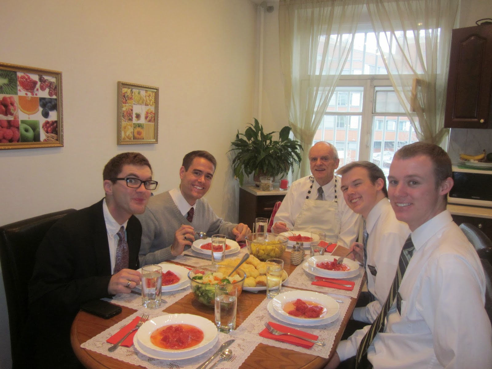 For Sunday School, we attend the Gospel Principles class with our missionaries and their investigators and new converts. At the end of the lesson on the gathering of Israel, the teacher asked if anyone would share their story as to how they came into the Church. Andrey, who was baptized a year ago, stood and told the following story. It seems he served in the military with a younger man who was a member of the Church. He noticed that this man was different....didn't drink, smoke, use bad language, was always kind, etc. Upon inquiring as to what made him different, Andrey was first introduced to the gospel. They talked about it a lot and then they were reassigned. Several years later, Elder Jewkes was serving in the area where Andrey's friend lived. He told Elder Jewkes about Andrey. Through a series of little miracles, Andrey was taught the gospel by Elder Jewkes via skype. Andrey immediately accepted everything that was taught to him, even the word of wisdom (giving up black tea is hard for Russians). We knew that story at the time of his baptism, but it was good to be reminded of the miracles that surround this missionary work.
